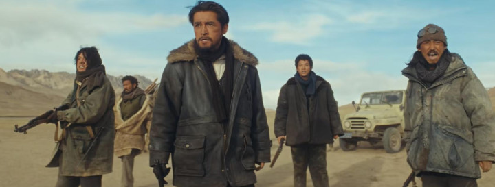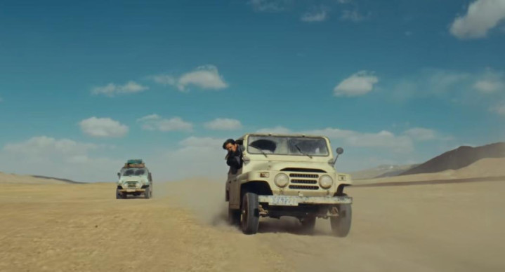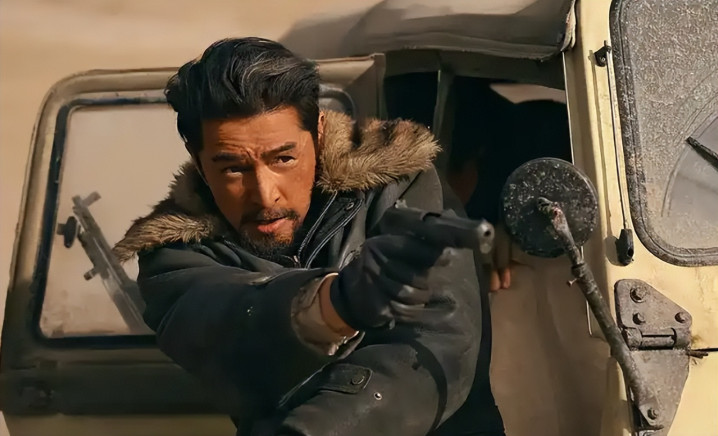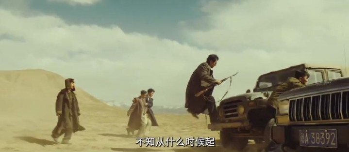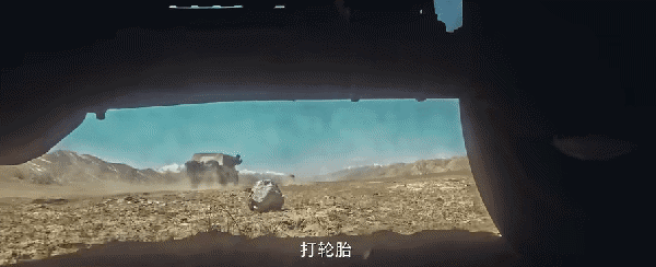 无人区原本的空旷荒凉,忽然被一阵枪声打破——三辆车,荒野追逐。